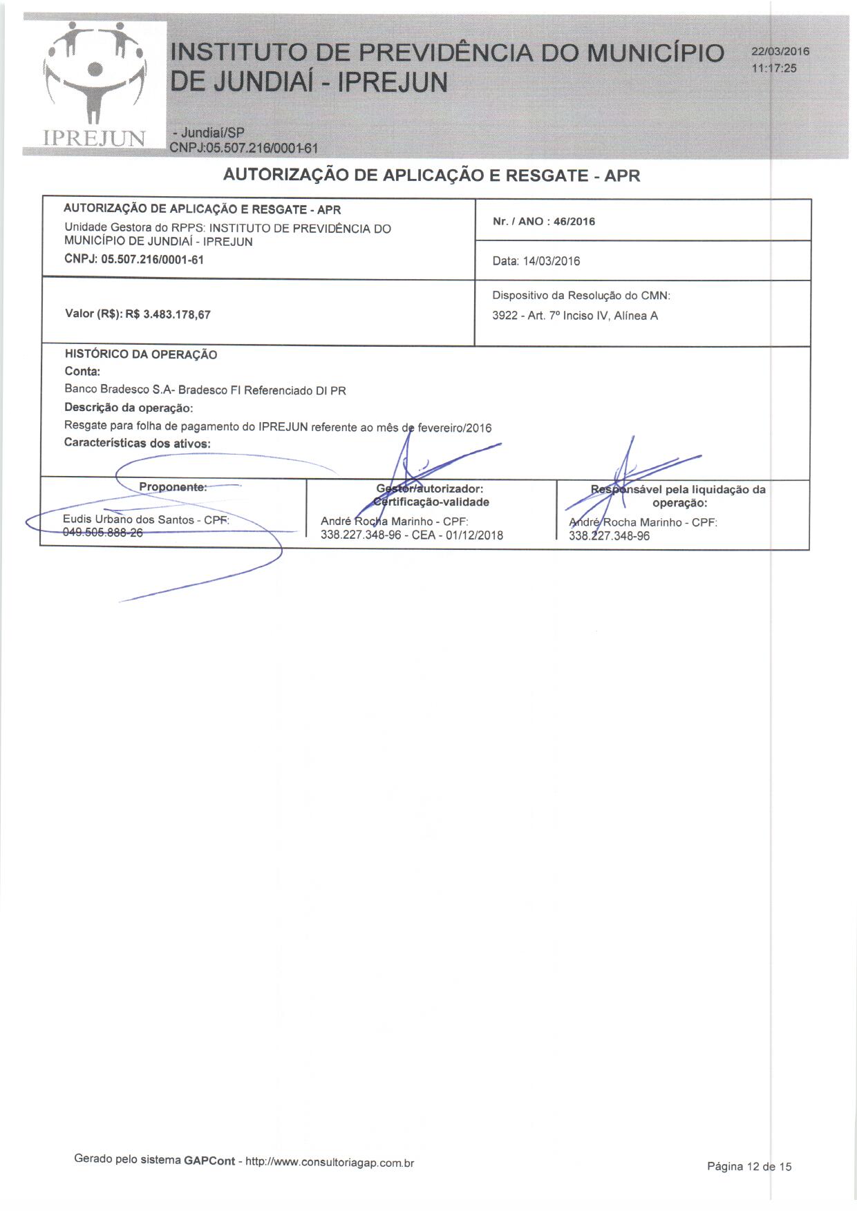 | 2016 | 46 | 14/03/2016 | 3.483.178,67 | APR | |