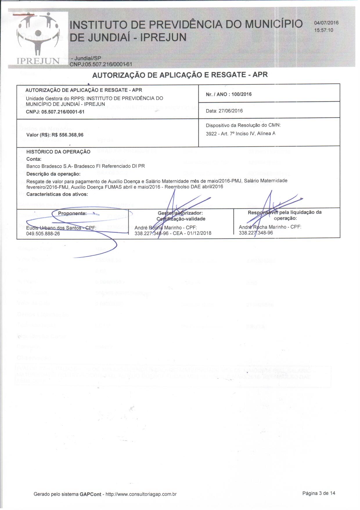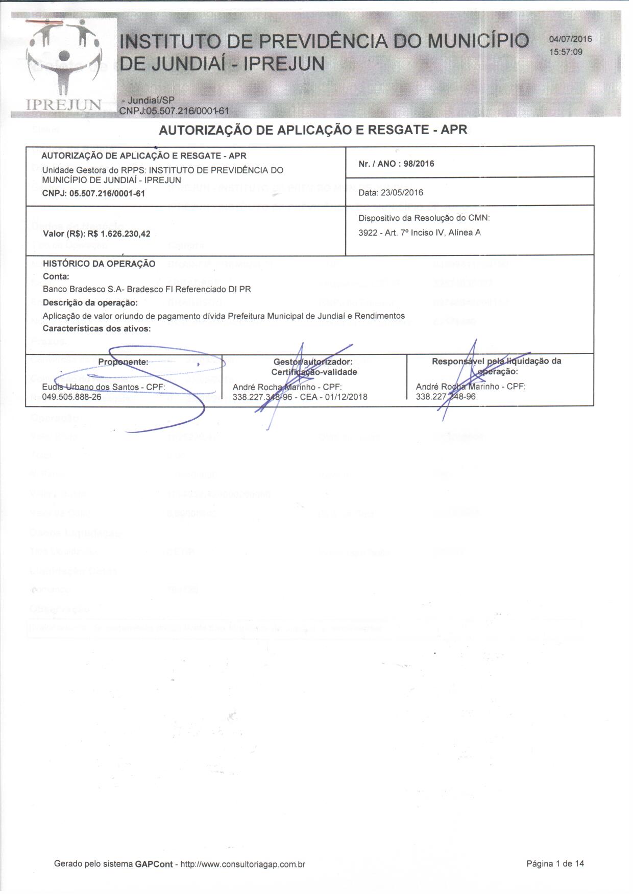 | 2016 | 25 | 03/02/2016 | 1.454.097,04 | APR | |