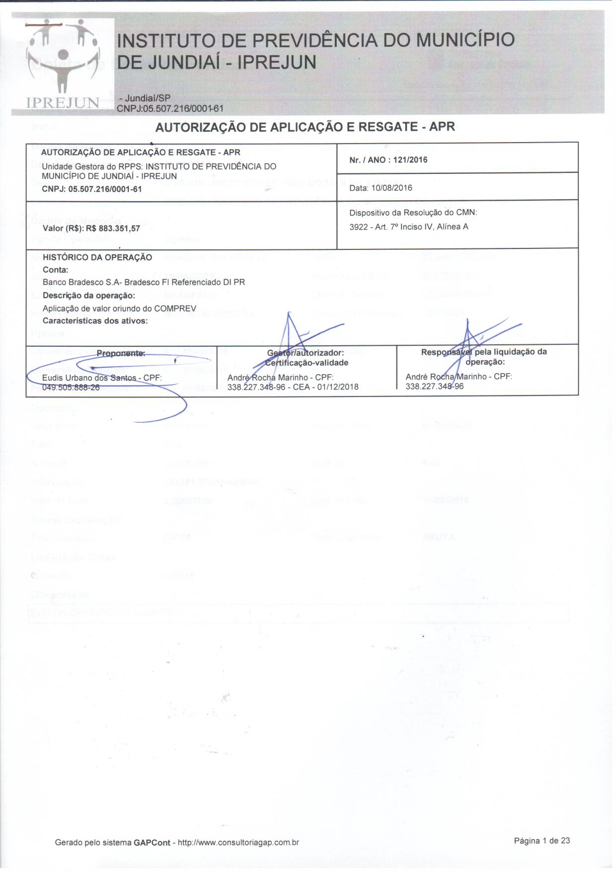 | 2016 | 121 | 10/08/2016 | 883.351,57 | APR | |