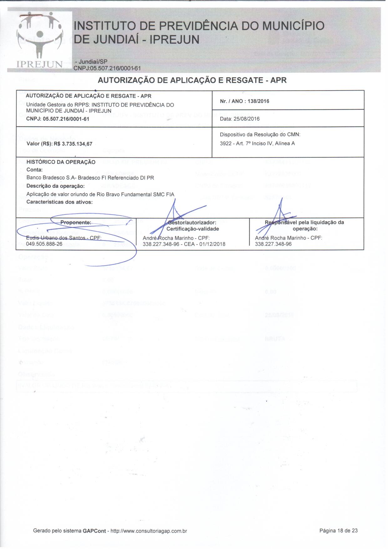 | 2016 | 138 | 25/08/2016 | 3.735.134,67 | APR | |